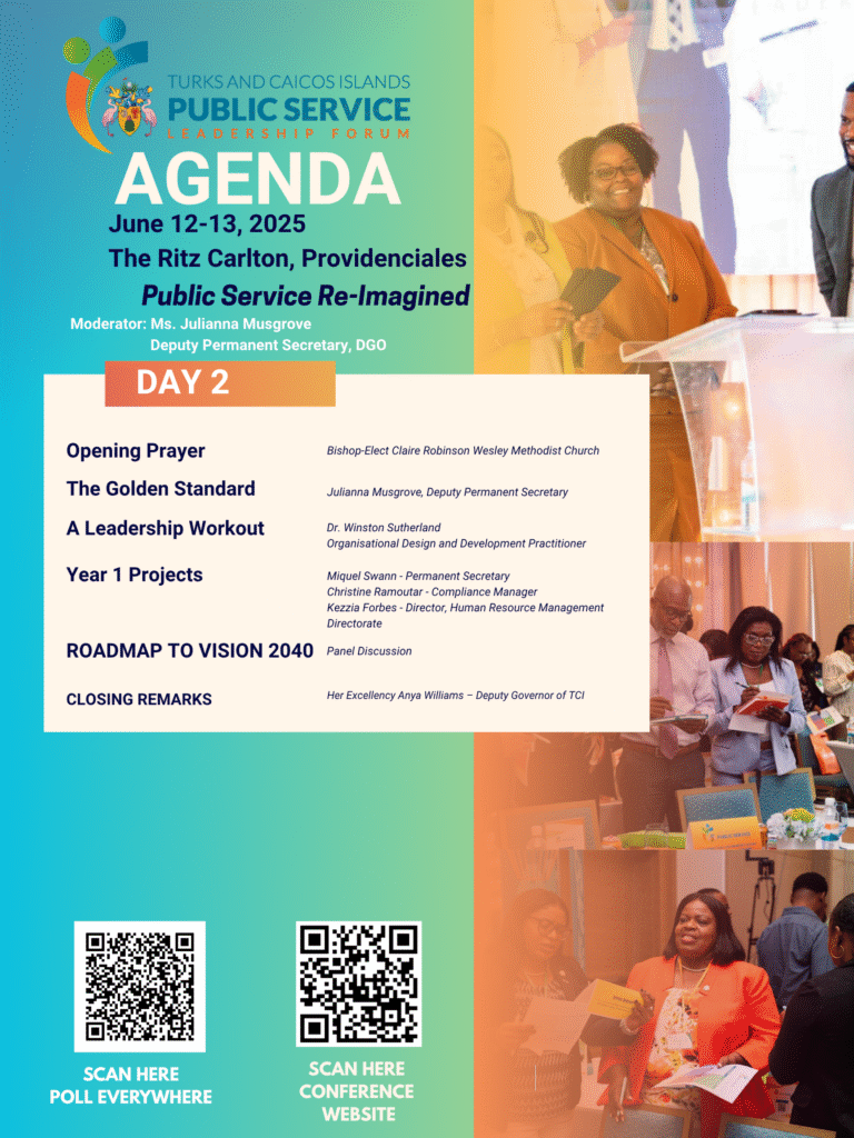 Our guiding theme, “Empowering today for tomorrow’s success,” encapsulates our belief in the transformative power of effective leadership in shaping a brighter future for the Turks and Caicos Islands. Together, let us embark on a journey of growth, learning, and empowerment. Join us in shaping a future where leadership thrives, success is sustainable, and the public service plays a pivotal role in driving meaningful progress for our beloved Turks and Caicos Islands.